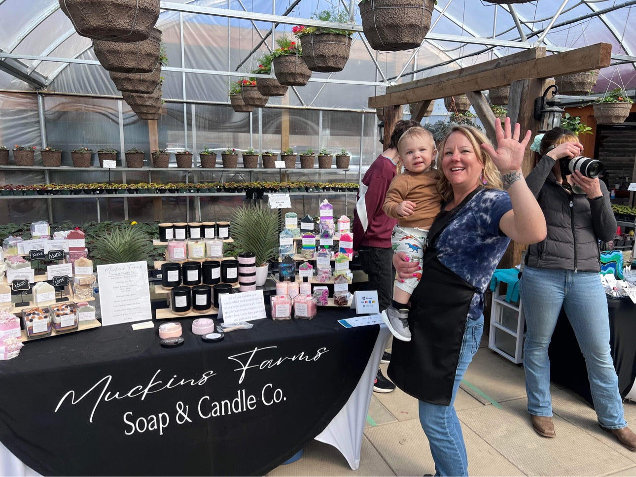 At Muckins Farms Soap & Candle Co., our soap-making journey began 18 years ago for our son, who suffered from atopic dermatitis. Mom didn't want to use steroid creams or harmful detergents on his delicate skin, so she learned to make soap, and ultimately, she cleared her baby boy's skin. That soap became one of our most popular bars, the NUDE bar!